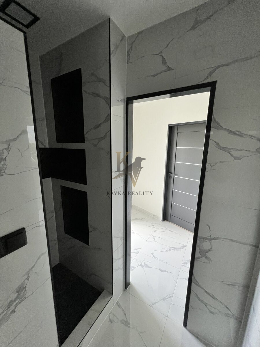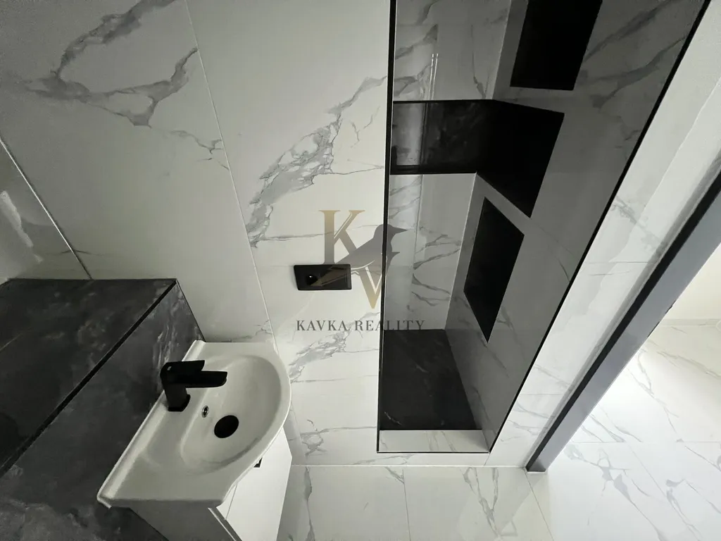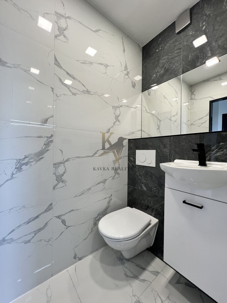 Je po kompletně moderní a nadčasově krásné rekonstrukci včetně nové kuchyňské linky s elektrospotřebiči ( sklokeramická varná deska s vestavěnou horkovzdušnou multifunkční troubou a odsavačem par vše kvalitní značky Gorenje a Whirlpool . ) Celá kuchyňská linka je v pěkném podsvícení , zabudovaného led pásku, který mění barvy. Koupelna a WC je zděná- rekonstruovaná- kde se nachází velký zděný sprchový kout osvětlený nikou s dekorativními policemi , ( ve sprše většinou poslouží jako neocenitelný úložný prostor pro šampon nebo sprchový gel, ve stěnách mimo ně slouží spíše jako police a má funkci dekorační – krásně se tady budou vyjímat květiny nebo třeba suvenýry z cest, či ručníky .) hranaté umyvadlo se skříňkou a zrcadlo zapuštěné v obkladu . Wc je závěsné značky Geberit . Krásná a kvalitní mramorová dlažba se nachází v kuchyni , chodbě v koupelně a na Wc . Ve zbylém pokoji se nachází plovoucí podlaha .