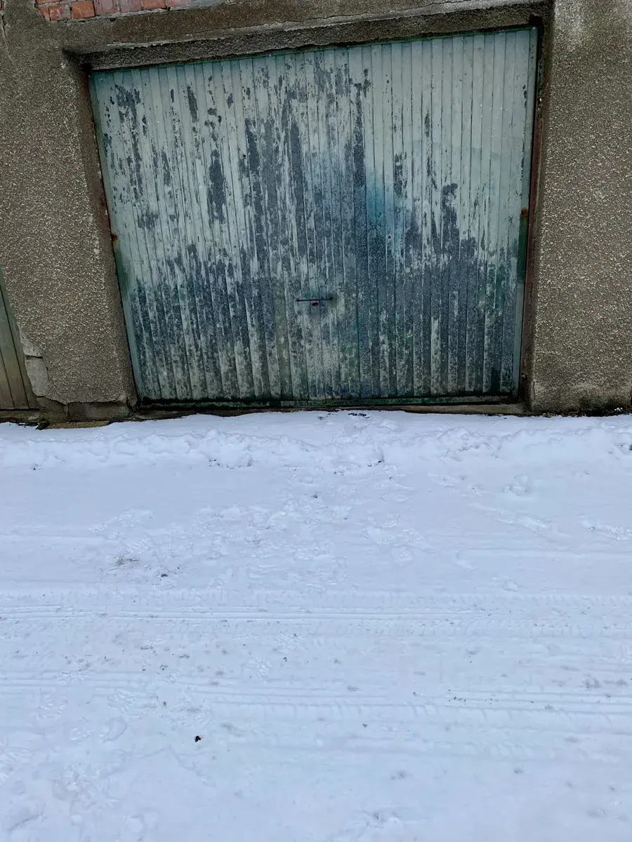 Garáž má masivní strop a původní vrata, což z ní dělá praktický prostor pro uskladnění vozidla nebo dalších věcí.