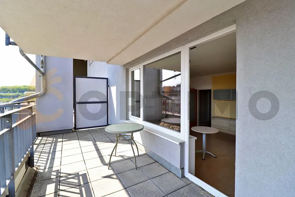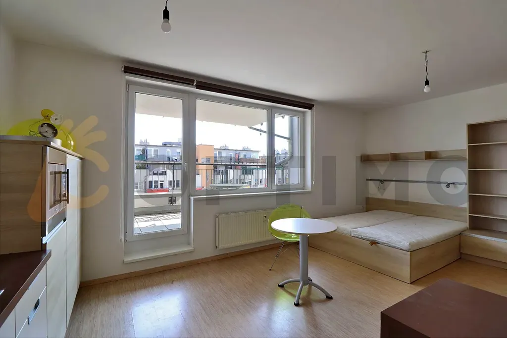 Zprostředkujeme vám dlouhodobý pronájem kompletně zařízeného bytu 1+kk s terasou a garážovým stáním v novostavbě z roku 2007 od společnosti FINEP, ulice Pod Harfou, Praha 9 - Vysočany v těsné blízkosti zeleně podél říčky Rokytka.