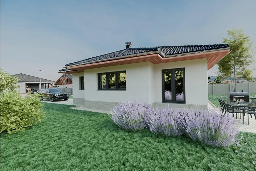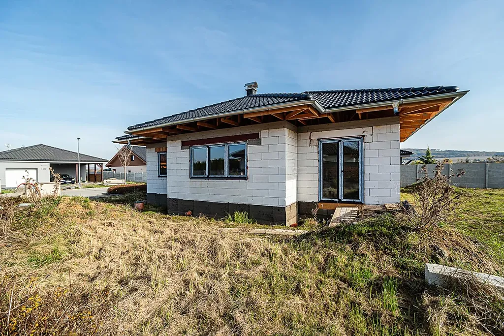 Exkluzivně nabízíme k prodeji rozestavěný moderní jednopodlažní rodinný dům o ploše 97 m se zajímavým půdorysem a valbovou střechou, situovaný na pozemku o výměře 840 m.