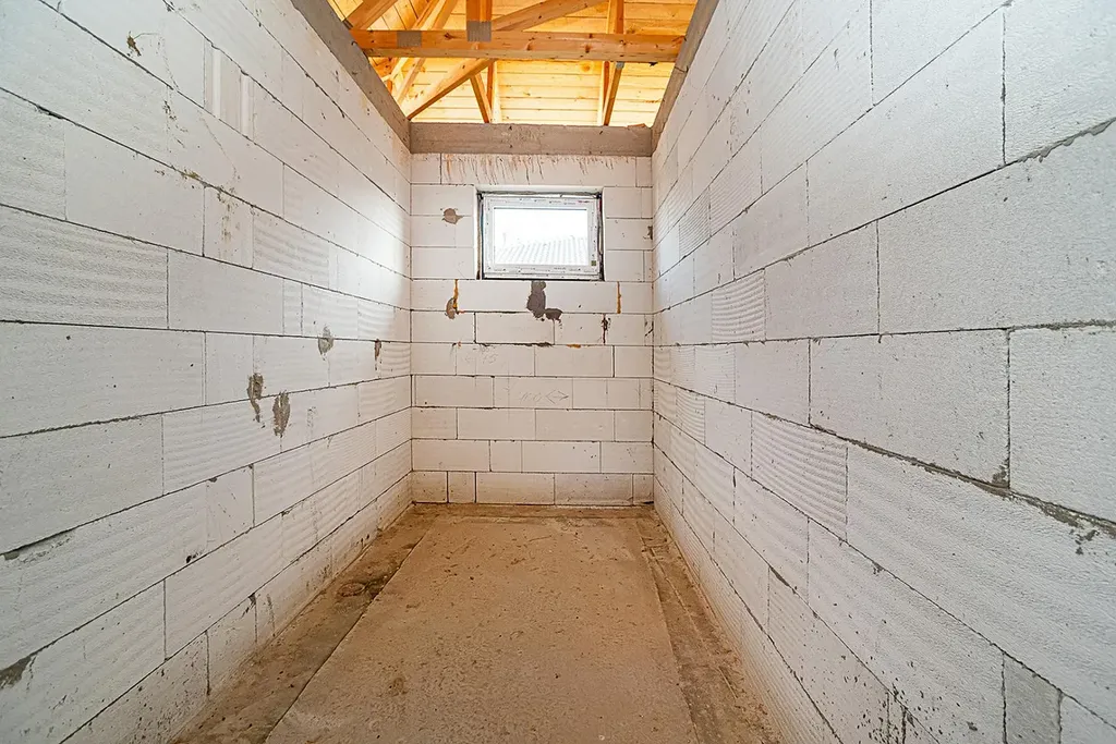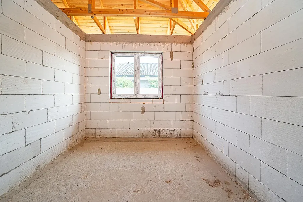 Jedná se o uzavřenou hrubou stavbu včetně střechy a oken.