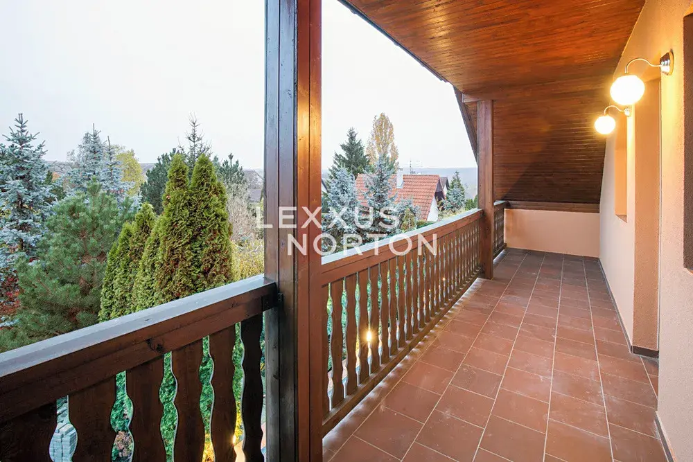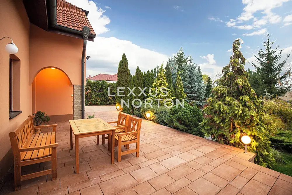 Tento prostorný rodinný dům o dispozici 5+kk nabízí celkovou obytnou plochu 200 m2, rozloženou do dvou nadzemních podlaží. V přízemí se nachází vstupní hala, obývací pokoj s krbem, kuchyňský kout a jídelní prostor, pracovna/ložnice, koupelna, samostatná toaleta a komora. V patře domu jsou umístěny tři ložnice, z nichž dvě mají přímý přístup na balkony, druhá koupelna a komora. K domu náleží terasa, udržovaná zahrada (2670 m2) s okrasnou zelení a vzrostlými stromy a garáž.
