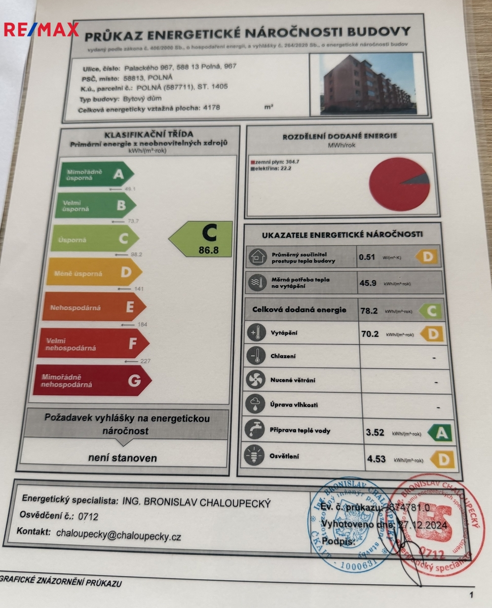 Ve výhradním zastoupení nabízíme k prodeji bytovou jednotku o dispozici 3+1 a podlahové ploše 75 m², umístěné v 1. nadzemním podlaží bytového domu po kompletní revitalizaci, v klidné a vyhledávané lokalitě města Polná.