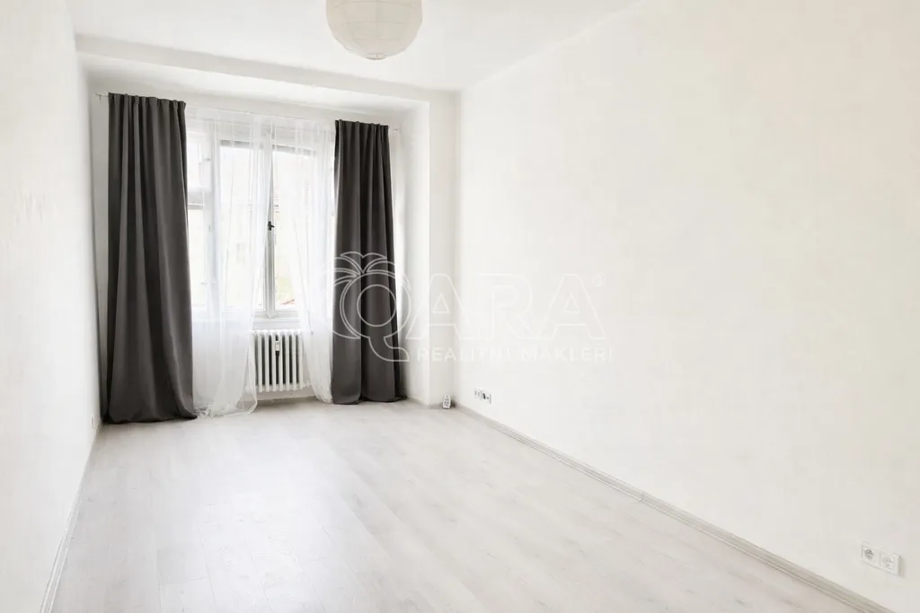 Dispozice bytu nabízí obývací pokoj s kuchyňskou linkou se spotřebiči (lednice, mrazák, trouba, indukce, digestoř), ložnici, oddělenou toaletu a koupelnu se sprchovým koutem, pračkou, zrcadlem a umyvadlem. Dva prostorné pokoje jsou orientovány do ulice.