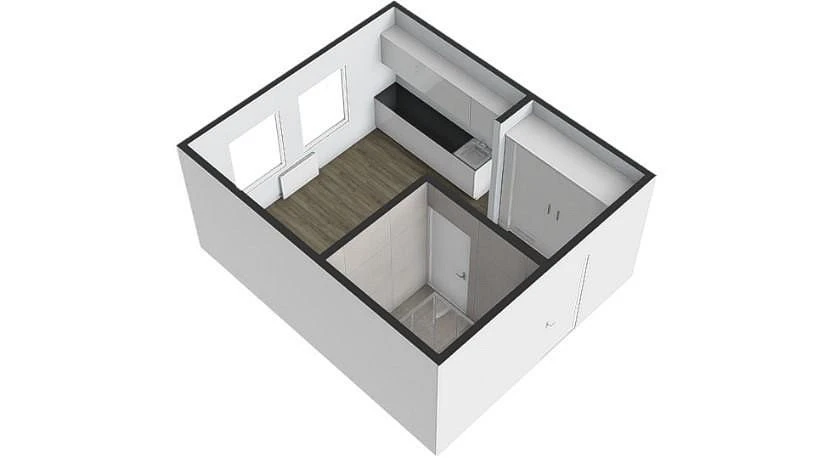 Za vstupními dveřmi bytu se nachází menší chodba (cca 3,20 m²), která disponuje prostornou šatní skříní. Po levé straně je koupelna se sprchovým koutem, závěsnou toaletou, umyvadlem, zrcadlovou skříňkou a otopným žebříkem. Koupelna má výměru cca 3,30 m². Hlavní dominantou bytu je útulný obytný pokoj s kuchyňskou linkou o výměře cca 11,10 m², který je orientovaný na východ. Kuchyňská linka je vybavena lednicí, dřezem a varnou dvou plotýnkou.