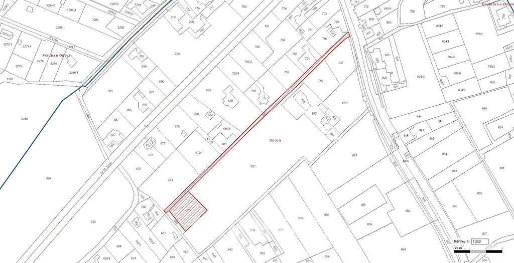 Nabízíme k prodeji pozemky v podílovém spoluvlastnictví, a to p. č. 670 ve spoluvlastnickém podílu 7/8 (podíl 1/8 je ve vlastnictví Města Orlové) a p. č. 842 ve spoluvlastnickém podílu 7/248 v k. ú. Orlová. Celková výměra odpovídající nabízeným spoluvlastnickým podílům činí 1 072 m².