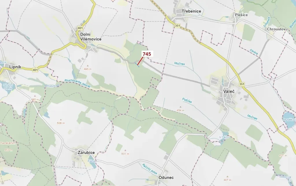 Lesní pozemek o výměře 1957 m2, parcelní číslo 745, podíl 1/1, katastrální území Dolní Vilémovice, obec Dolní Vilémovice, obec s rozšířenou působností Třebíč, okres Třebíč, Kraj Vysočina. Po těžbě.