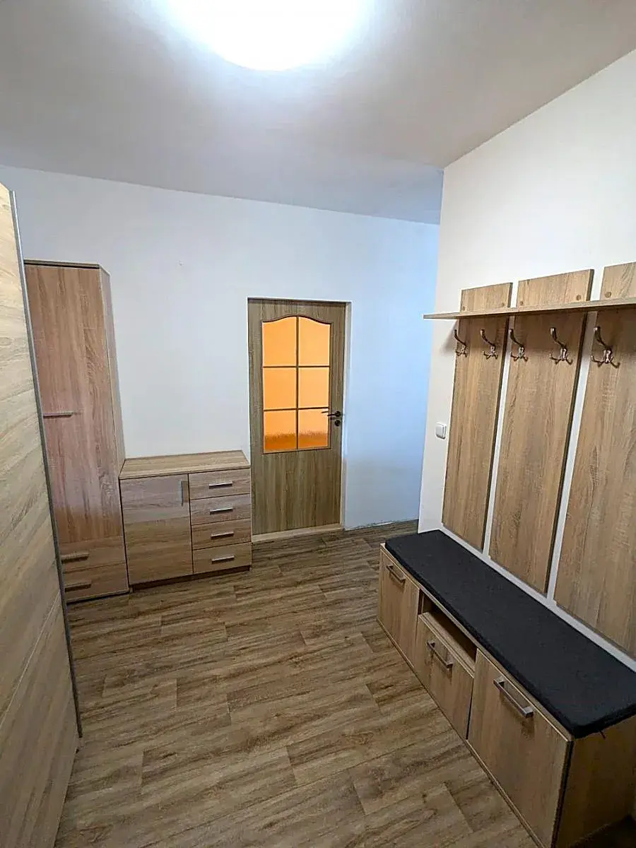 Předsíň: Vestavěná šatní skříň poskytuje dostatek úložného prostoru, botník s věšákem