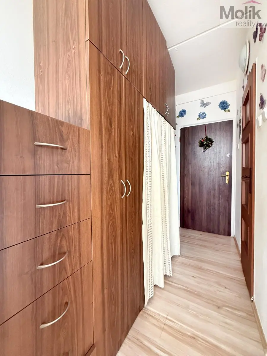 Byt je v udržovaném, rekonstruovaném stavu. Kuchyňská linka na míru s lednicí, koupelna je zděná se sprchovým koutem. V obytné místnosti je plovoucí podlaha. V předsíni se nachází velká šatní skříň s věšákem.