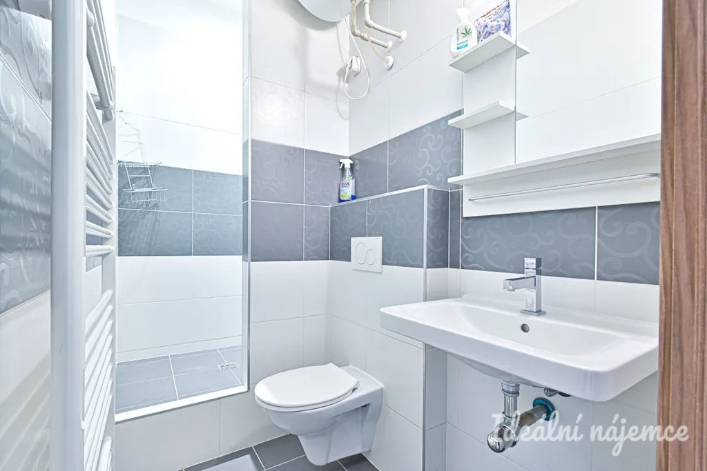 Interiér je ve velmi dobrém stavu a je připraven k okamžitému nastěhování. Dispozice 1+kk je chytře řešená – nabízí komfortní obytnou část s kuchyňským koutem a vše potřebné pro pohodlný městský život. Kuchyně je vybavena spotřebiči jako lednice s mrazákem, varná deska a mikrovlnná trouba. Zbytek obytné místnosti disponuje rozkládací postelí, šatní skříní a psacím stolem.