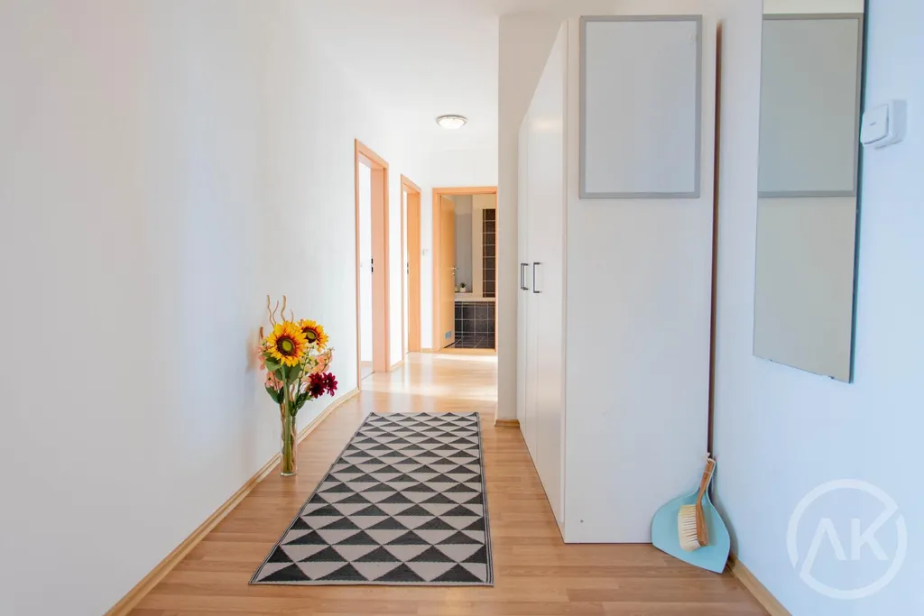 Byt 3+KK o celkové výměře cca 98m2 je dispozičně vhodně rozdělen. Z centrálního pokoje s kuchyní je vstup na prostorný balkon. Do dvou neprůchozích pokojů se dostanete z chodby. Do koupelny stejně tak. WC je od koupelny odděleno, součástí bytu je také parkovací stání a sklep.