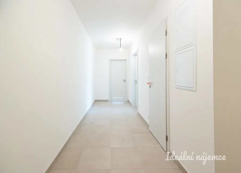 Nabízí se nevybavený. V kuchyni najdeme ledničku, myčku nádobí, indukční desku i vestavěnou troubu. Obývací část se nabízí nezařízená. Ložnice je taktéž nezařízená. V koupelně najdeme sprchový kout, toaletu a umyvadlo. Pračka není součástí pronájmu. V předsíni se nachází praktické šatní skříně.