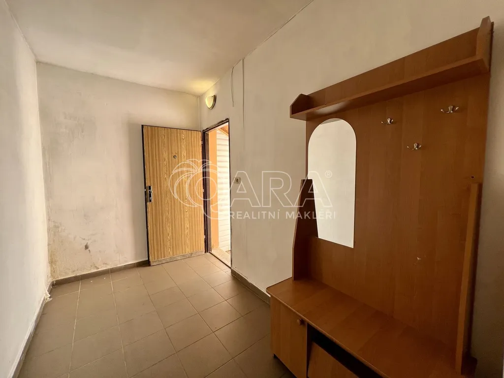 Dispozičně je byt od hlavních dveří řešený vstupní halou, chodbou s plynovým kotlem a koupelnou se sprchovým koutem, kumbálem a samostatnou toaletou. Dále obývacím pokojem s kuchyňským koutem a neprůchozím pokojem.