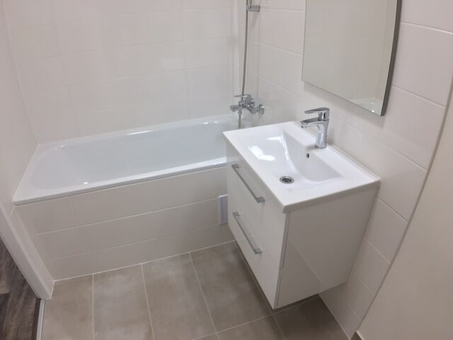 Bytová jednotka prošla v roce 2022 kompletní rekonstrukcí. Má vyzděné jádro, koupelnu s vanou a prostorem pro pračku, samostatné WC a kuchyň s rohovou linkou vybavenou sklokeramickou varnou deskou a elektrickou troubou. Dispozice zahrnuje tři pokoje, z nichž dva jsou neprůchozí; jeden z nich má přímý vstup na lodžii. Praktickým benefitem je komora a dostatek prostoru pro vestavěné skříně.