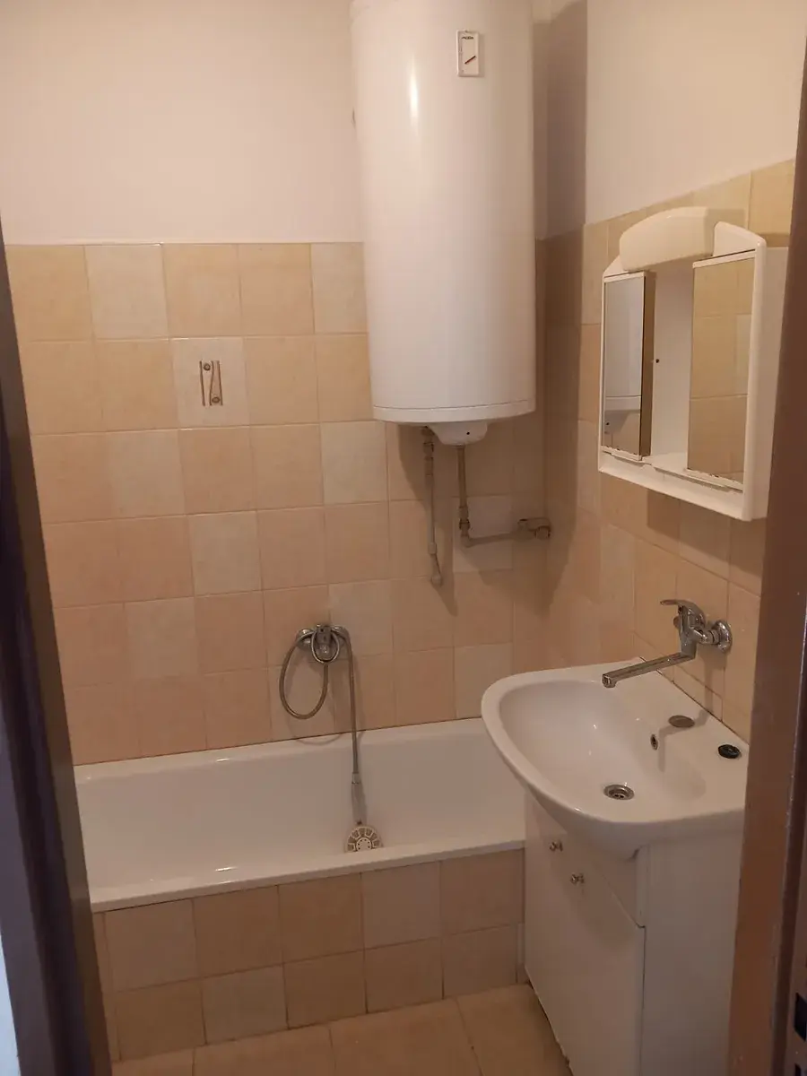 Byt je nyní vytápěn centrálně elektrokotlem, je možné zřízení vlastního topení - teplené čerpadlo, elektrokotel.