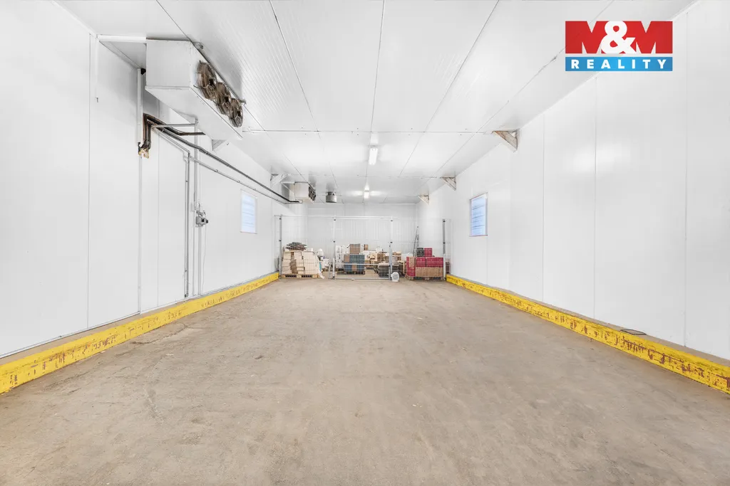 Nabízíme k prodeji skladový objekt o užitné ploše 826 m², který je aktuálně využívaný pro dozrávání a skladování zeleniny a ovoce. Nemovitost se nachází ve strategické lokalitě s výbornou dostupností a širokým potenciálem dalšího využití v oblastech logistiky, velkoobchodu, potravinářství, distribuce či investice. Celý objekt se nachází na vlastním oploceném pozemku, který tvoří bezpečný a uzavřený areál. Klíčovým parametrem je železniční vlečka vedoucí přímo ke skladu a dvě nakládací rampy pro pohodlnou manipulaci se zbožím. Uprostřed budovy je prakticky umístěn kancelářský prostor, přičemž dálnice je vzdálena pouze 300 m a centrum města 500 m. Objekt umožňuje efektivní zásobování jak kamionovou, tak železniční dopravou. Díky rampám a dispozičnímu řešení je zajištěn plynulý provoz a oddělení administrativní části od skladové. Sklad je připraven k okamžitému využití nebo k úpravám dle potřeb nového majitele, a to i s možností koupě včetně stávajícího vybavení.