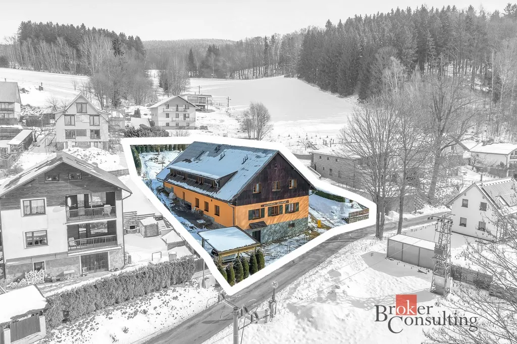 Nabízíme k prodeji výjimečně prostorný dům v malebném horském městečku Horní Maršov – místě, kde se snoubí klid, příroda a celoroční turistický ruch. Na první pohled působí jako rodinný dům s velkorysým zázemím. Při bližším pohledu ale zjistíte, že nabízí mnohem víc. Může se stát skutečně komfortním vícegeneračním bydlením, chalupou pro velkou rodinu nebo chytrou investicí s možností pravidelného příjmu z ubytování. Dům má 3 nadzemní podlaží a 1 podzemní podlaží, celkovou kapacitu až 38 lůžek a prošel rozsáhlou rekonstrukcí v roce 2010 (nové rozvody topení, elektroinstalace, vody, kompletní koupelny, plastová okna a dveře, komín, terasy, úpravy pozemku a další). Kolaudace proběhla v roce 1987.