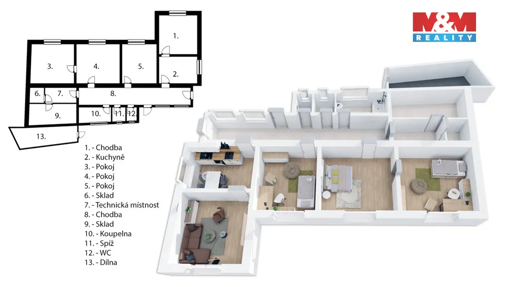 Pod domem je sklep, vhodný pro uskladnění úrody ze zahrady.