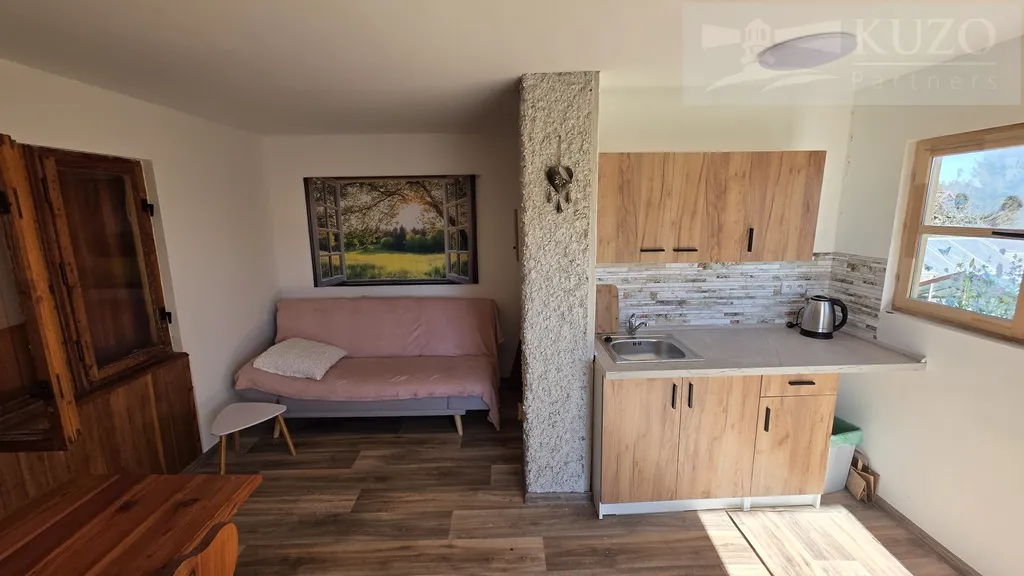 Stav „Vejít a relaxovat“: Chata o zastavěné ploše 21 m² je ve výborném stavu, čistá a světlá. Je vidět, že o ni bylo s láskou pečováno.