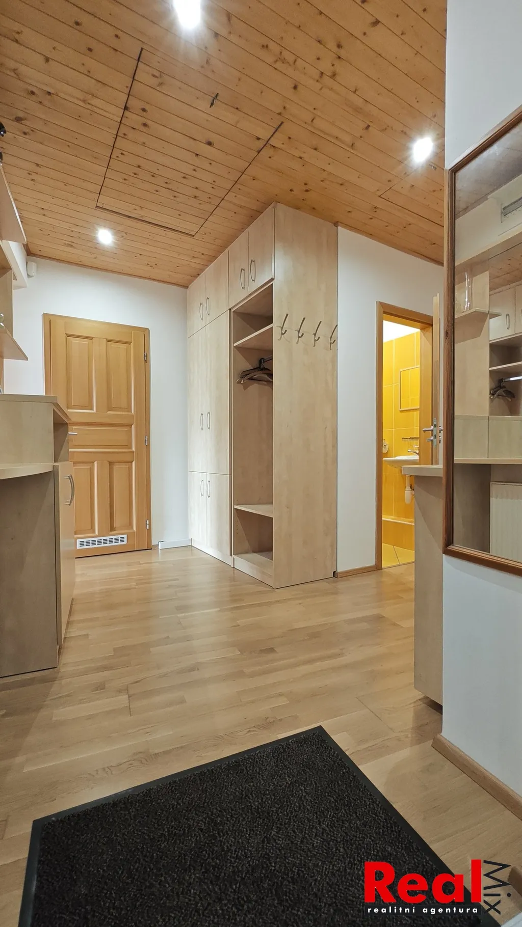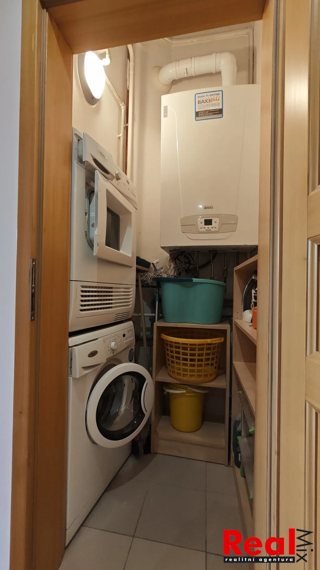Byt je zařízen kuchyňskou linkou s el. multifunkční troubou a sklokeramickou varnou deskou, myčkou, ledničku s mrazákem a mikrovlnnou troubou, dále je v bytě pračka a sušička, ložnice je vybavená velmi prostornou šatní skříní a vyklápěcím vestavěným dvoulůžkem, v obývacím pokoji je k dispozici nábytek dle fotodokumentace, v předsíni je vestavěná prostorná skříň a dále jsou k dispozici úložné prostory v předsíňové části pod stropem.