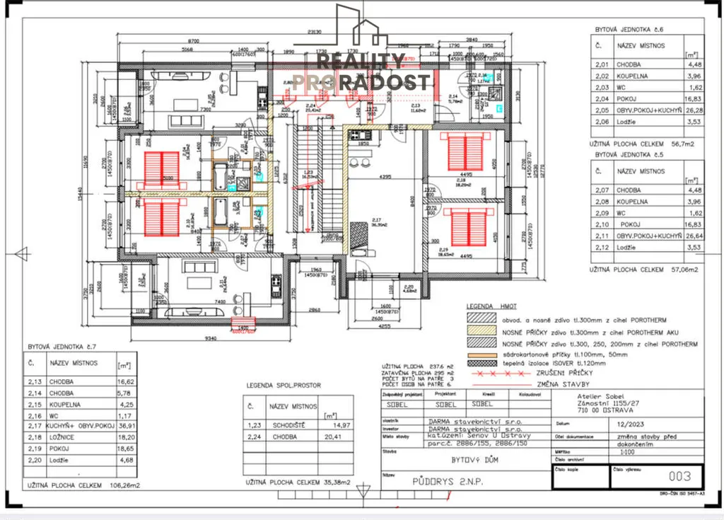 2NP - Byty ( jsou dva byty 2kk a jeden 3kk - všechny byty s balkóny )