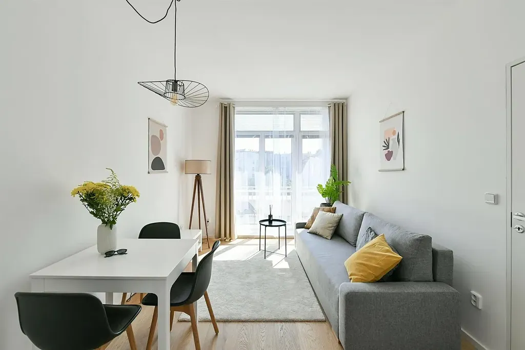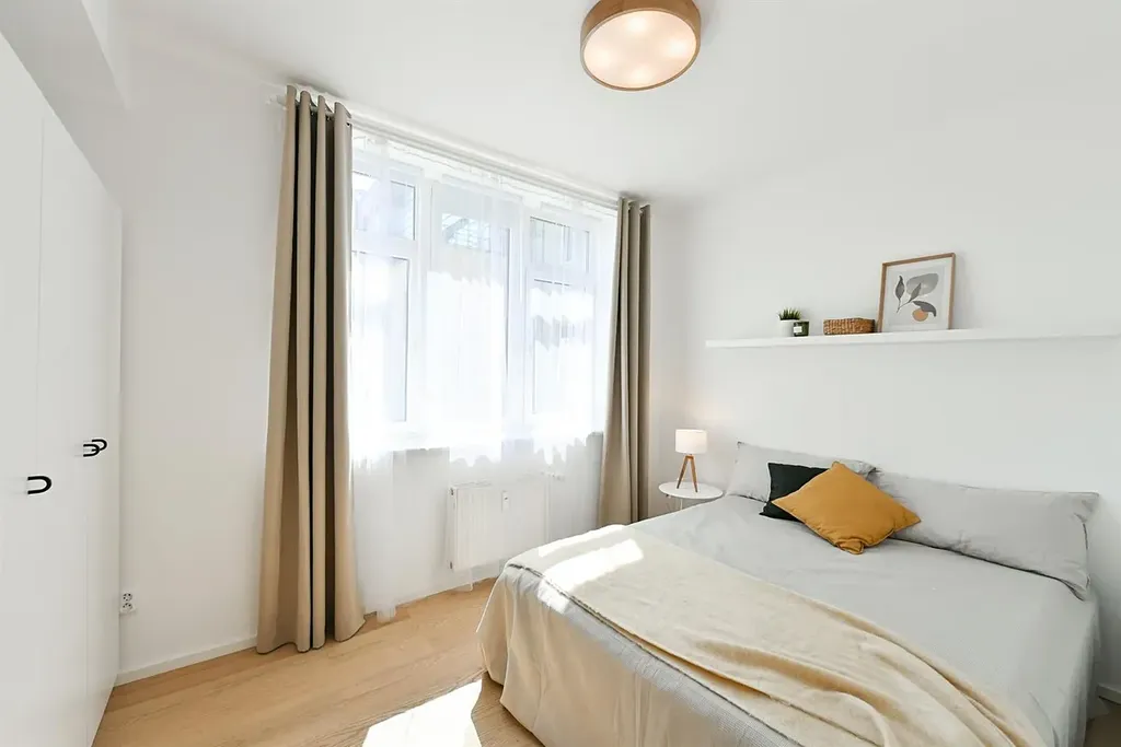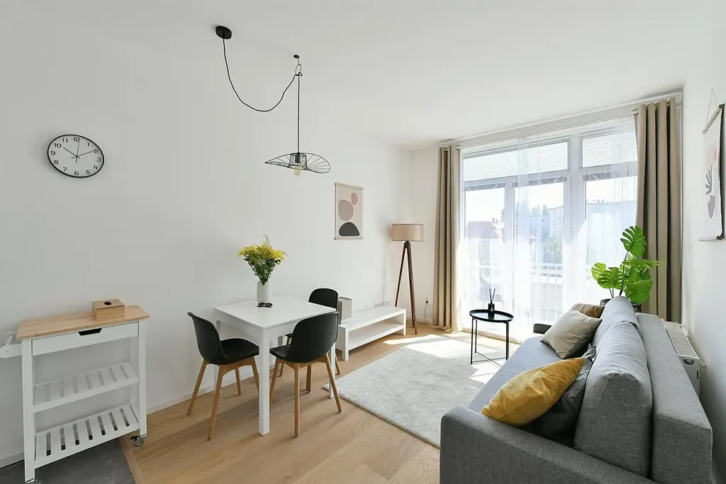 Dispozice: vstupní chodba s vestavěnými šatními skříněmi na míru, kde si pohodlně odložíte kabát a boty, obývací pokoj přímo propojen s kuchyňským koutem, kde najdete všechny potřebné spotřebiče, sklokeramickou desku s digestoří, troubou, mikrovlnou troubou, kombinovanou lednici s mrazákem, myčku nádobí a dokonce i pračku, je tu jídelní stůl s židlemi a rozkládací sedačka a také vstup na příjemný balkón, dále ložnice s manželskou postelí a šatní skříní, koupelna se sprchovým koutem, toaletou a umyvadlem. Byt je po kompletní a velmi zdařilé rekonstrukci (v roce 2022) a všude byly použity moderní nadčasové a kvalitní materiály. Celý byt je velmi pěkně a vkusně zařízen včetně doplňků.