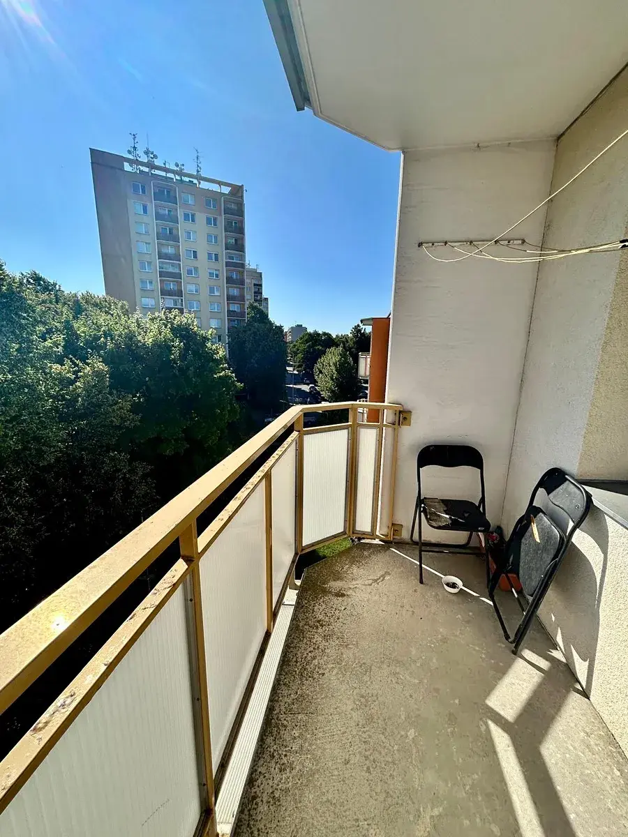 Součástí bytu je i lodžie, která poskytuje příjemný prostor k odpočinku s hezkým výhledem.