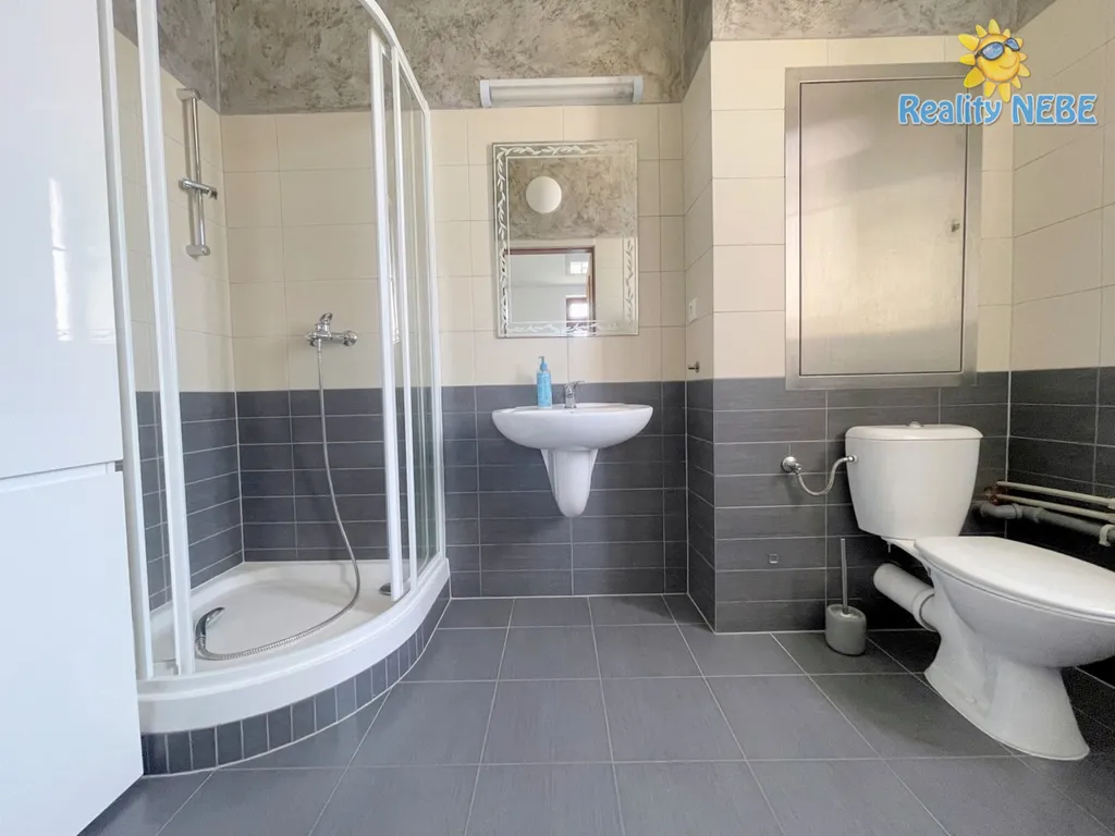 Pronájem komerčního prostoru 79m2 Budějovická Jesenice u Prahy. Obchodní prostor se nachází ve frekventované části naproti obchodního centra (Žabka, Ella) a zastávky bus. Komerční prodejní prostor má výlohu do ulice a vstup z parkoviště s dostatkem parkovacích míst. Velký prostor má 42,44m2 s dlažbou, osvětlením, vytápěním, klimatizací. Další prostor má 13,5m2, kde je umístěno veškeré technické zázemí a regulace teploty. Koupelna 5,4m2 se sprchou a toaletou, žebrovým topením. Výstup z komerčního prostoru na stranu, kde je vyčleněné parkoviště, které je oploceno a zabezpečeno bránou na dálkové ovládání. Energie přepisem. Elektřina, plyn, voda. Velmi hezký, čistý prostor k podnikání, který Vás bude reprezentovat. Vhodný na prodejnu, masáže, kanceláře. Volný ihned.