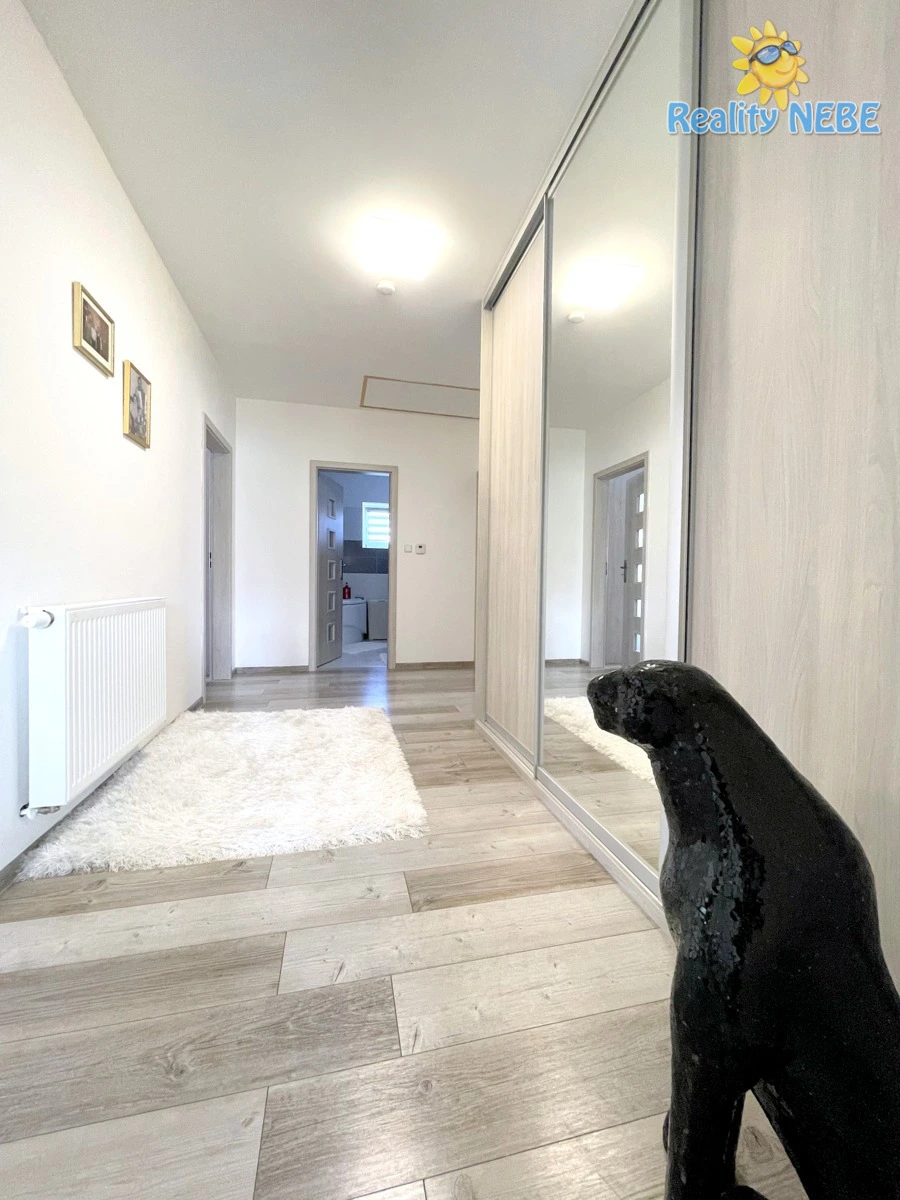 Prodej rodinného domu, se zastavěnou plochou 134m2, pozemkem 762m2, v ulici U Remízu v Předboji. Dům je samostatně stojící, přízemní novostavba. Je dispozičně řešen jako 4+kk, 2x koupelna + 2x venkovní garáž stání + terasa + zahradní domek, nově zbudovaný dřevník, zastřešený gril a příprava na letní bazén. Dům se nabízí včetně nového vybavení, viz. foto. Vstupní chodba s dlažbou, vestavnými skříněmi se zrcadly, toaleta se sprchovým koutem. Dále je prostorná chodba, kde jsou na míru také zhotoveny vestavné skříně se zrcadly. Z chodby vcházíte do jednotlivých samostatných neprůchozích pokojů. Ložnice s dvoulůžkem, křesílky, nočním stolkem, pokoj s dvoulůžkem, kosmetickým stolkem, další pokoj slouží jako šatna, zde jsou také vestavné skříně. Mezi jednotlivými pokoji je prostorná koupelna s rohovou vanou, toaletou, pračkou, umyvadlem, žebrovým topením. Naproti vcházíte do obývací části spojenou s kuchyňským koutem. Kompletně moderně vybavená rohová kuchyň s oknem a vestavnými spotřebiči. Lednice s mrazákem, myčka, el. trouba, indukce, digestoř, mikrovlnka, dřez a samostatná spíž s okénkem, kde je umístěn i elektrický kombinovaný kotel na ohřev vody a tepla v domě. Kuchyň a obývací část je propojena luxusním jídelním stolem s výhledem na terasu i krb. Krbová kamna jsou krásnou dominantou společenské části domu, který do domova přinese očekávané příjemné teplo. Z obývací části vstoupíte přímo na zastřešenou terasu s možností otevření jednotlivých zástěn, kudy projdete na prostornou zahradu. Technické zázemí a zahradní nářadí řeší nově postavený zahradní domek u domu, kde je přívod elektřiny a menší dílna. Zde najdete uskladnění pro veškerá potřebná sezóní zařízení. Dům je v perfektním stavu, kompletně luxusně vybaven novým nábytkem k pohodlnému užívání celé rodiny, v oknech sítě proti hmyzu, moderní rolety den/noc ve všech oknech, vinylové podlahy, internet, TV. Kolem pozemku je kačírek, předzahrádka je designově upravena. Dům je v bezprostřední blízkosti Prahy - východ. Zděný, samostatně stojící dům v rohové zástavbě je vystavěn na rovinatém pozemku o rozloze 762m2, tato rozloha poskytuje ideální poměr zahrady a soukromí. Zateplený dům má zámkovou dlažbu, elektrická posuvná vrata k vjezdu na pozemek, nově vybudovaný přístřešek pro garážové stání několika aut. Výborná dostupnost do centra Prahy, zastávka MHD 300m, bus na metro Ládví. Krásný, nový moderní přízemní dům, přesvědčte se na prohlídce.