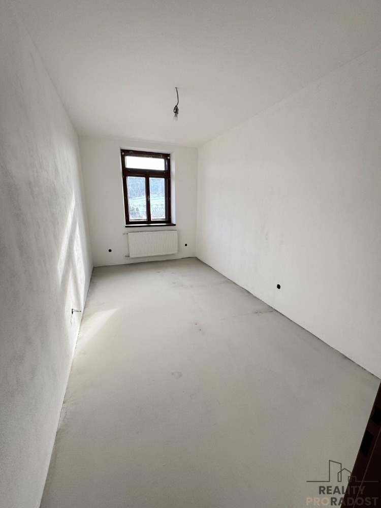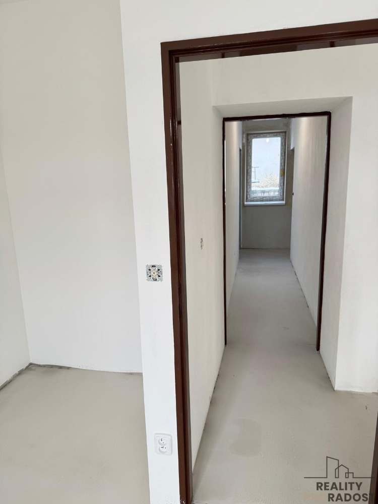 Nabízíme vám výhradně budoucí prodej nově rekonstruovaného bytu o dispozici 3+kk v rodinném domě o třech bytových jednotkách s podílem na domě a pozemku v obci Nová Ves u Litovle. Byt s podlahovou plochou bytu 80,48 m2 se nachází v přízemí domu a patří k němu i zahrádka vč. kůlny o velikosti 40 m2. Vrchní patro domu je odděleno a je zde vlastní vstup do domu a na zahradu. Konstrukce v 1. patře jsou tvárnice, přízemí domu je smíšené zdivo - pálená cihla a suchá vepřovice. Dům je zateplen polystyrenem. Vytápění bytu novým elektrickým kotlem, na kterém lze ovládat vytápění od 2 kW - 14 kW dle potřeby. Ohřev vody - nový elektrický bojler. V bytě je nově vybudováno - elektřina, topení, voda, vnitřní nové omítky, stupačky, betonová podlaha vylitá nivelační stěrkou, plastová okna, radiátory. Co se týká dalšího dovybavení bytu, tak současný majitel nabízí možnost dobudování pro nového vlastníka a to za velmi příznivou cenu dle výběru materiálu a podobně. Jedná se například o podlahy, kuchyň, koupelnu (počítá se tam s vanou, WC, umyvadlem, sprchovým koutem). Vstupní dveře jsou nové bezpečnostní. Přední strana domu s orientací na Jih jsou kvalitní dřevěná okna dvojskla. Zadní strana domu s orientací na sever jsou plastová okna trojskla. Každý byt v domě má samostatné měřiče. Vrchní patro v domě již obývá velmi příjemná rodina. V současné době se řeší rekonstrukce posledního sousedního bytu v domě, která bude rovněž nabídnuta posléze ke koupi. Součástí koupě bude vlastní parkovací místo podélné s výměrou 2,5 m x 6m, které se ještě bude stavět. Jelikož si projekt vyžádal drobné úpravy, řeší se kolaudace, která bude dokončena v brzké době. Půdorys bytu je přiložen ve fotografiích, je ohraničen zeleně. Jedná se o klidnou lokalitu s dobrou dostupností do okolních měst a vzdáleností do Litovle 6 km, Olomouce 20 km, Mohelnice 17 km. V případě zájmu o další informace ohledně prodeje a výhodného financování kontaktujte realitního zprostředkovatele. PENB tř. B - velmi úsporná.