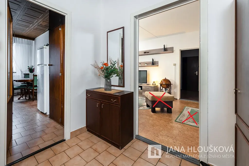 Byt má starší zděné jádro, plastová okna a vyštukované stěny, jinak je v převážně původním, ale udržovaném stavu, a tak v něm můžete rovnou bydlet.