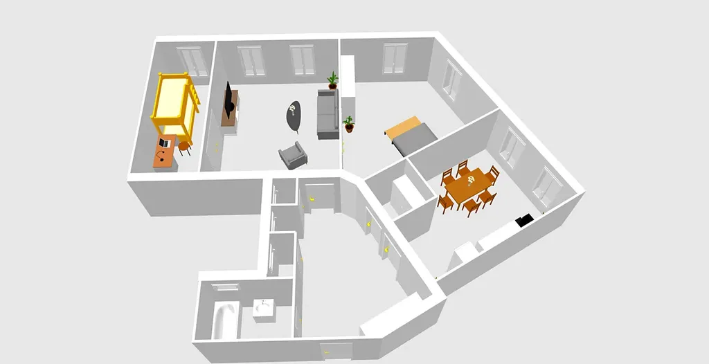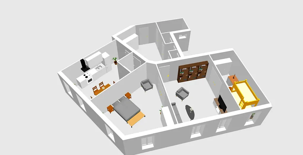 Dispozičně je byt řešen v atypickém půdorysu a nabízí komfortní uspořádání jednotlivých místností. Dominantou bytu je prostorná samostatná kuchyň, poskytující dostatek místa jak pro každodenní vaření, tak i pro společné stolování.