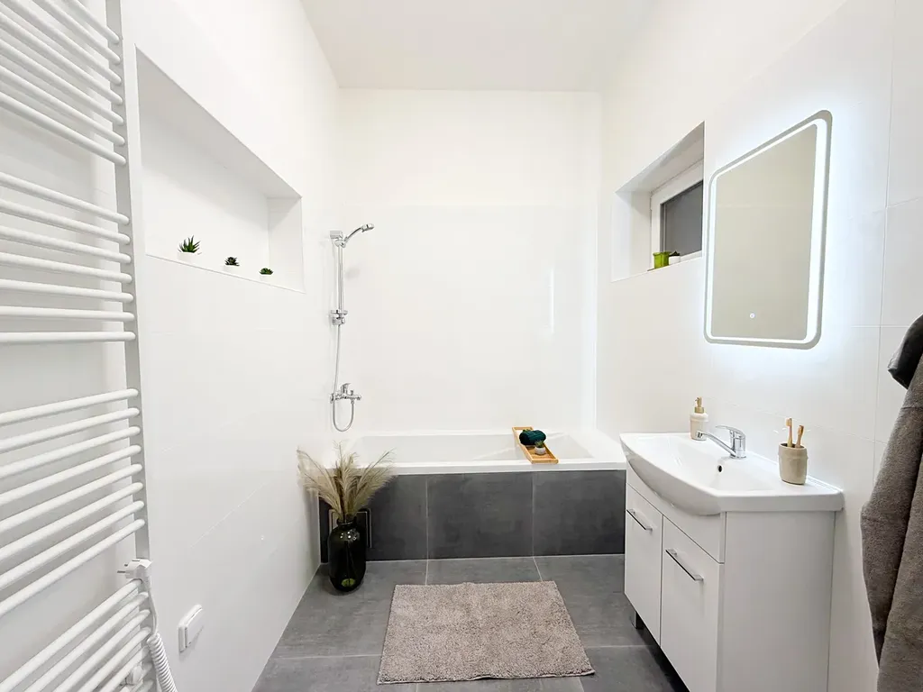 Byt prošel kompletní rekonstrukcí s důrazem na funkčnost. Nový nájemce se stane prvním uživatelem bytu po rekonstrukci — veškeré vybavení i povrchy jsou zcela nové a nepoužívané.