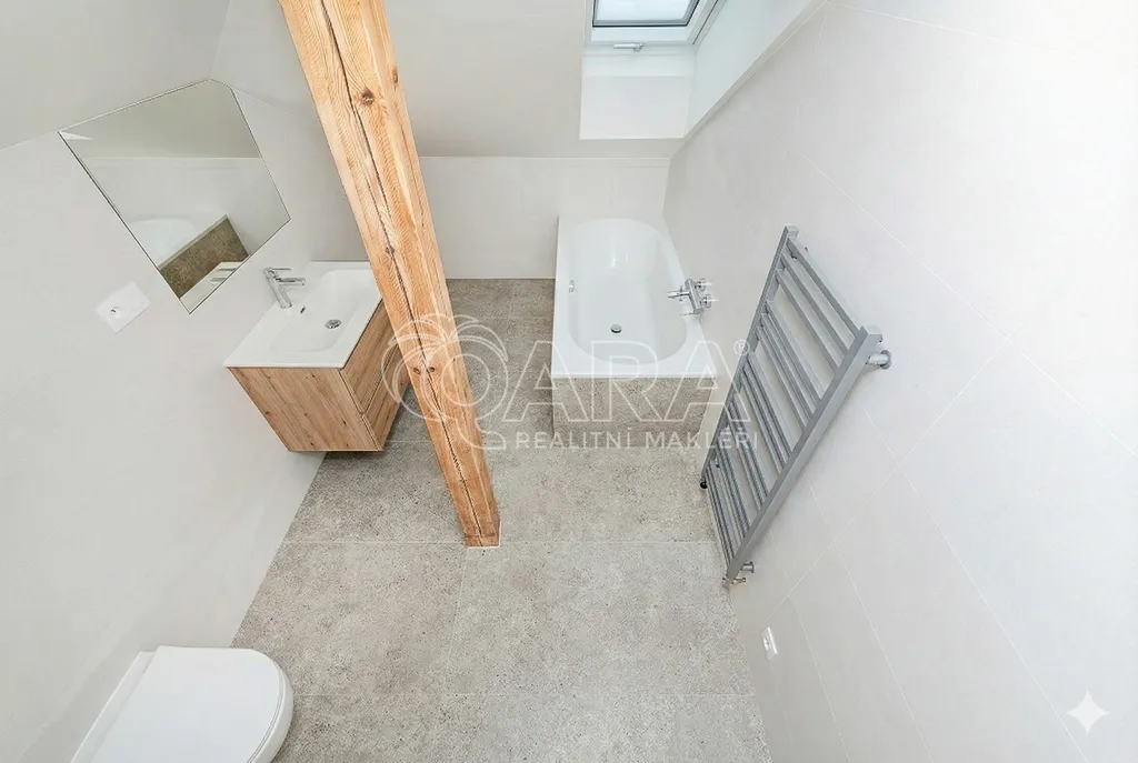 Podkrovní byt s vlastním balkonem/terasou (27 m²).