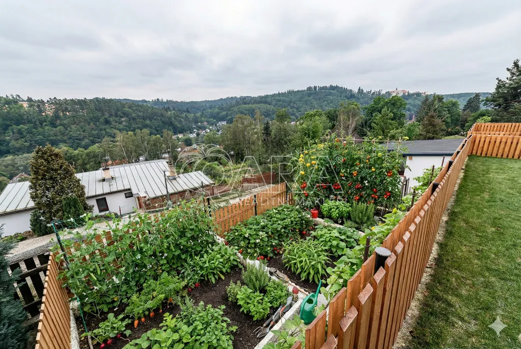 Pozemek byl upraven zahradním architektem tak, aby byl funkční. Najdete zde nově založený trávník, ovocné stromy a skleník pro vlastní zeleninu. Součástí prodeje je i zděný zahradní domek, který poslouží jako dílna nebo sklad zahradní techniky.