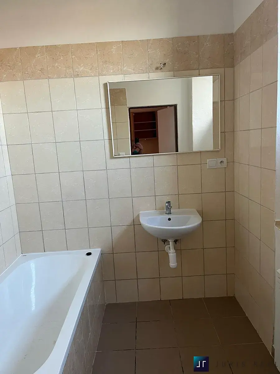 Nabízíme k pronájmu prostorný byt 1+kk (možno přepažit na 2+kk) v přízemí cihlového domu bez výtahu. Kuchyňský kout je situován do dvora, pokoj do zahrady. Byt je nezařízený, je zde pouze kuchyňská linka s elektrickým sporákem. Prostorná předsíň a koupelna s vanou je společná s WC. Vytápění zajištuje elektrokotel. K bytu náleží parkovací stání před budovou. Přímo v areálu jsou i komerční prostory k podnikání (dílny, sklady), lze kombinovat s bytem. K dispozici ihned.