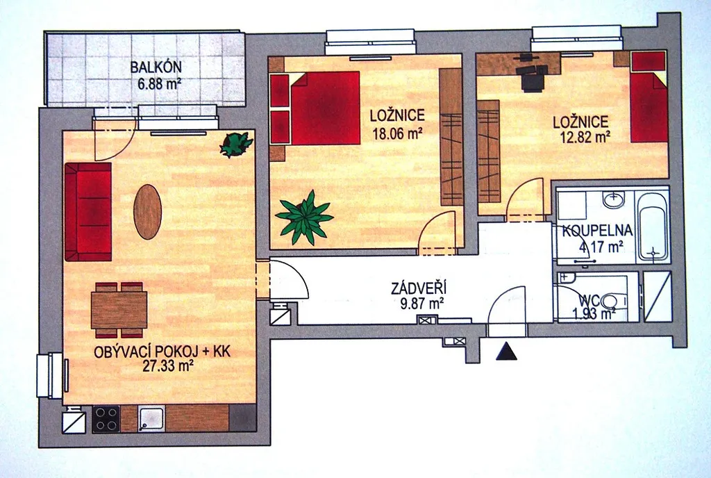 Dispozice bytu: obývací pokoj 27 m² s kuchyňským koutem (okno) a vstupem na lodžii; dvě neprůchozí ložnice (18 a 13 m²) , prostorná koupelna s vanou a skleněnou zástěnou / místo pro pračku i sušičku 600 mm - moderní nadčasový design, WC zcela odděleno / bidetová sprška + umyvadlo, příjemná vstupní hala velikosti 10 m². A zcela jistě oceníte nádhernou velikost lodžie 7 m²/ osvětlení + elektro zásuvka / přímo zve k příjemnému posezení se sklenkou dobrého vina, ideální místo pro balkónové květiny.