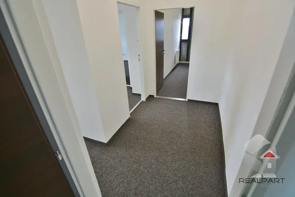 Nabízíme k pronájmu kancelář (2 místnosti + recepce + sklad) o celkové výměře 54,82 m2, obec Brno - Černovice, ul. U Svitavy. Kancelář se nachází v 6.NP / 6.NP administrativní budovy s výtahem. V kanceláři je položený nový zátěžový koberec. Areál je hlídán ostrahou 24h denně, k dispozici kantýna, recepce, služby ostatních firem v areálu. Možnost zapojení internetu a telefonu - není zahrnuto ve službách. Umístění sídla společnosti je možné. Na patře se nachází společná kuchyňka, k dispozici společná sprcha. V ceně je zahrnuto 2 parkovací stání u areálu, možnost pronájmu i více aut. Ihned k dispozici, pro více informací nás kontaktujte.