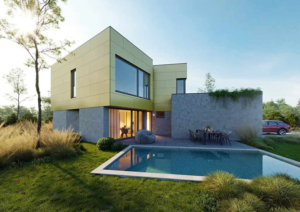 Moderní technologie domu odpovídají nejnáročnějším požadavkům: tepelné čerpadlo (v zimě topí, v létě chladí), rekuperace, inteligentní řízení domu, dřevěná okna s trojskly a retenční nádrž na dešťovou vodu o kapacitě 10 m³ (standardní kapacita je 5 m³). Díky tomu jsou měsíční náklady čtyřčlenné rodiny orientačně jen kolem 6 705 Kč.