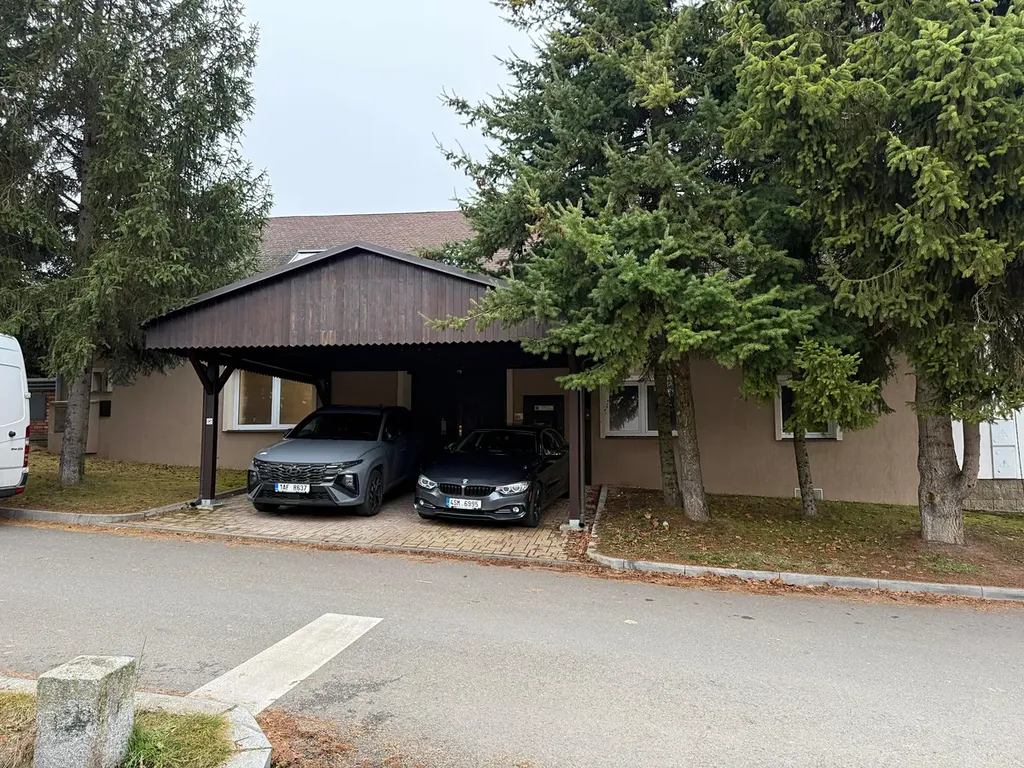 Před domem se nachází krytá venkovní stání pro 2 automobily.