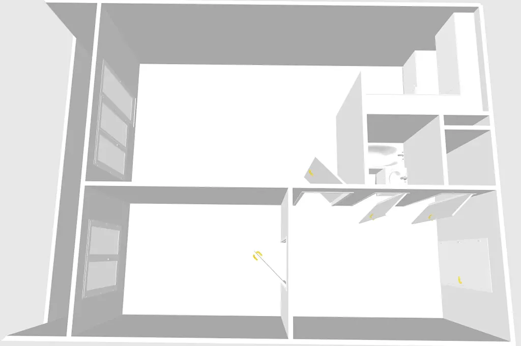V bytě je zděné bytové jádro s vanou. Toaleta je oddělená. Na chodbě je praktická dlažba a v obytných místnostech jsou plovoucí podlahy. Samostatná ložnice je přístupná z chodby.
