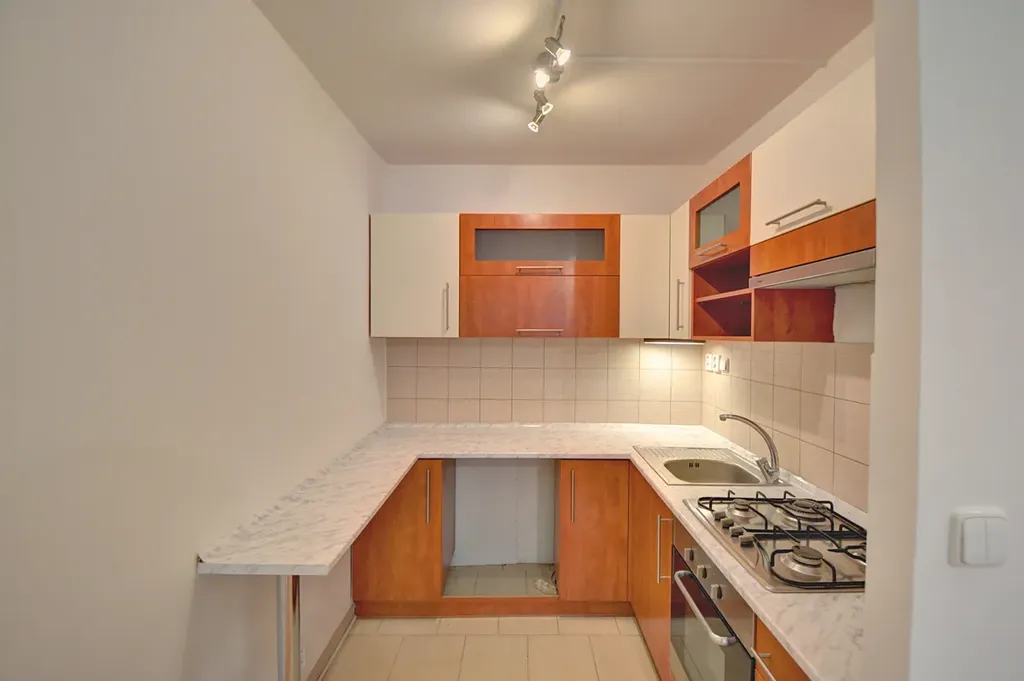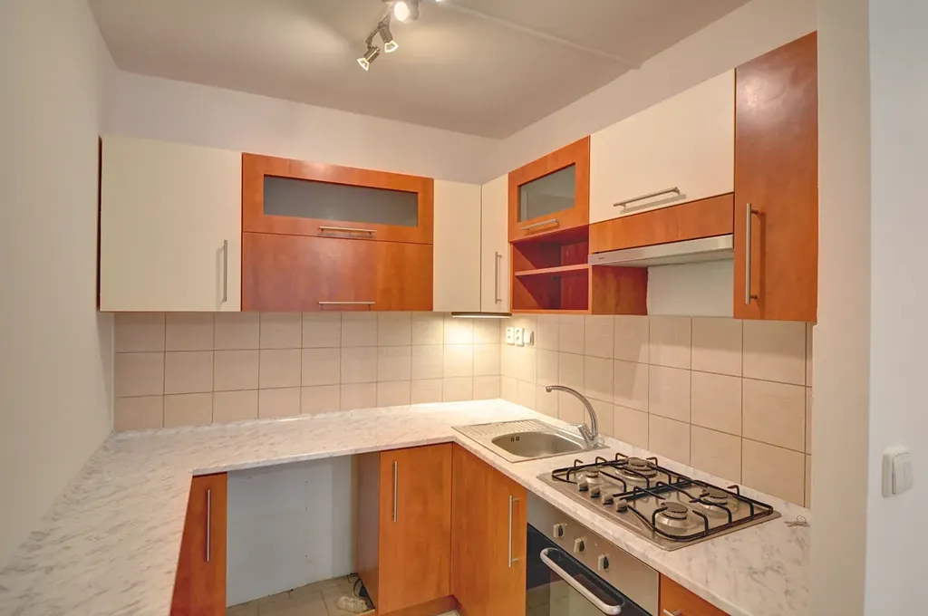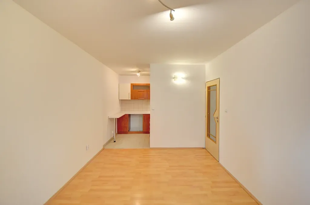 Z obývacího pokoje je vstup na prostornou zasklenou lodžii s příjemným výhledem do zeleně. Obývací pokoj je propojen s kuchyňským koutem. Kuchyň praktická s úložnými prostory a dostatkem pracovní plochy. Je zde i pamatováno na místo pro pračku.