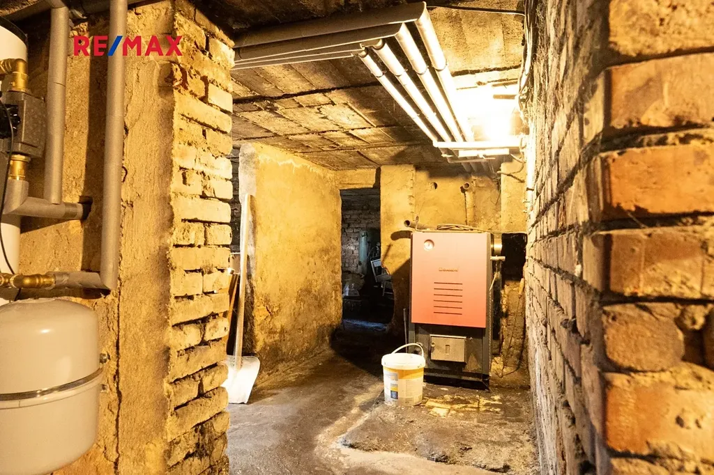 Sklep: dostatečně prostorný. Je zde ještě kotel, kterým se topilo dříve + nové rozvody pro topení a vodu po domě (nyní tepelné čerpadlo voda-vzduch).