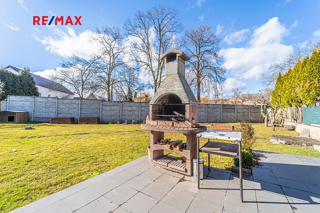 Zahrada + garáž: zahrada je prostorná, slunce na ní svítí celý den. Do garáže (38 m2), s rolovacími vraty od firmy Trido, je možné zaparkovat i dvě auta. Za garáží je základová deska pro pergolu.