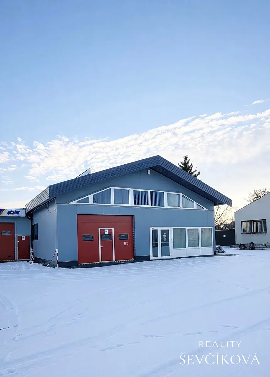 přijímací kancelář, WC, menší sklad a prostorná skladovací hala o výměře cca 150 m², opatřená vjezdovými vraty o výšce 3 m a šířce 3,8 m, umožňující pohodlný vjezd dodávkových vozidel a manipulaci se zbožím. Součástí haly je také vlastní sociální zázemí (sprcha, šatna).