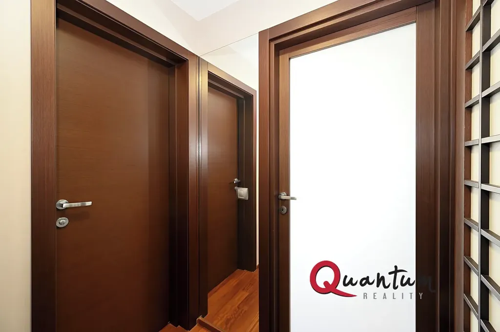Byt je navržen s důrazem na detail, praktičnost a čistý moderní design. Dispozice sestává ze vstupní chodby s vestavěnými designovými šatními skříněmi, které nabízejí dostatek úložného prostoru. Koupelna je vybavena sprchovým koutem walk-in, toaletou a s umyvadlem v elegantním provedení.