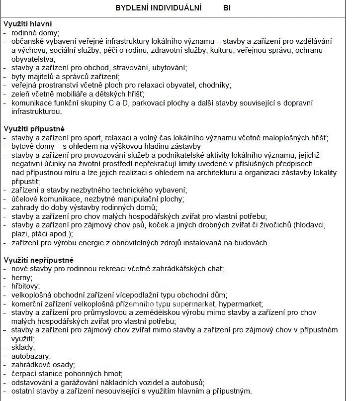 Dle územního plánu se jedná o pozemek určený pro bydlení individuální, kde je přípustná výstavba rodinného domu nebo řadových rodinných domů.