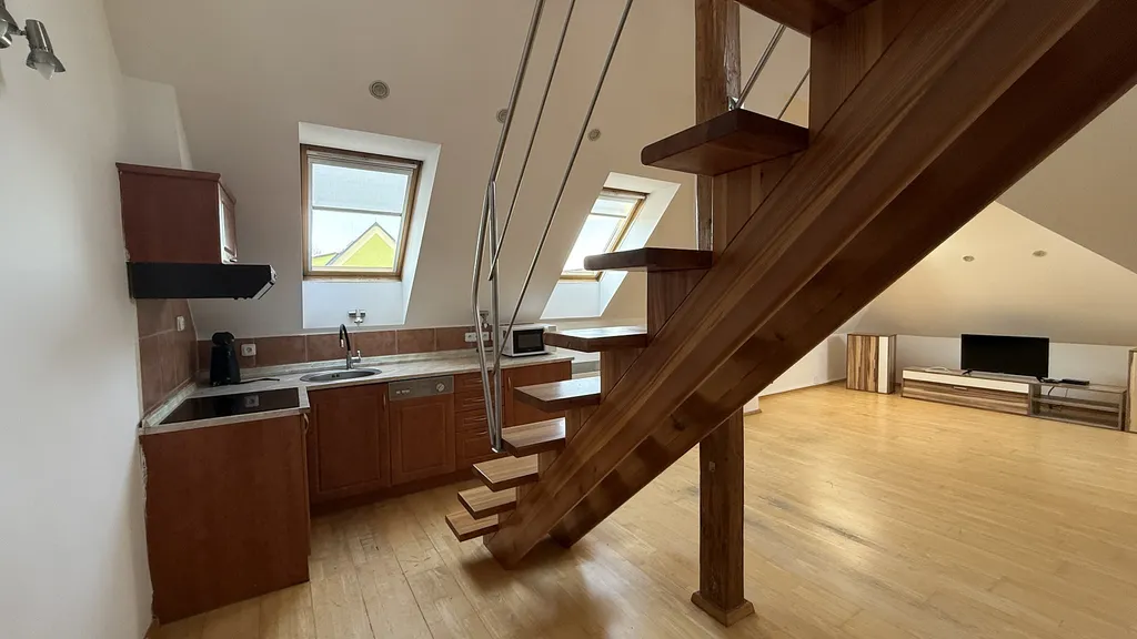 K pronájmu nabízím mezonetový byt o velikosti 80 m², který se nachází v 1. patře oplocené vily na ulici Wolkrova v Ostravě – Hulvákách.