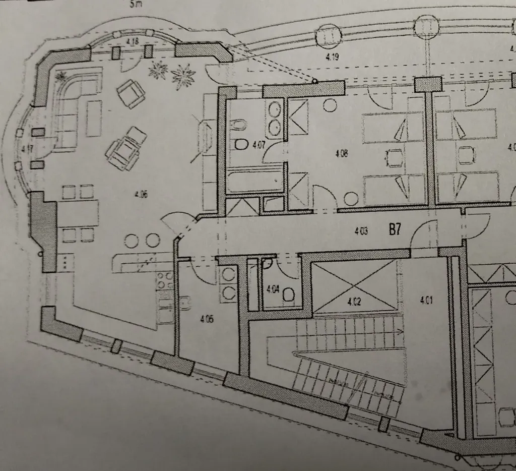 Byt je situován ve 4. patře šestipodlažní budovy s výtahem, což zaručuje pohodlný přístup z každého místa. Jeho užitná plocha činí 225 m², což poskytuje dostatek prostoru pro všechny členy rodiny. Nechybí ani prostorný balkon o rozměru 31 m², který je ideálním místem pro odpočinek po náročném dni. Pro vaše pohodlí je k dispozici garáž, což je v centrální části města jistě vítaným bonusem. Garáž je možné pronajímat nebo odkoupit zvlášť do osobního vlastnictví.