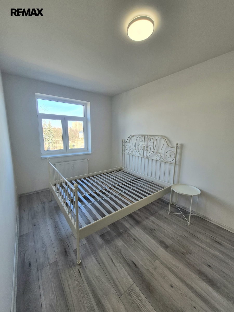 Byt prošel kompletní rekonstrukcí a je částečně vybaven. K dispozici je nová kuchyňská linka se sklokeramickou varnou deskou a horkovzdušnou troubou, vysoká úložná skříň nabízí dostatek prostoru pro umístění potravin či nádobí. Ložnice je vybavena romantickou kovou postelí a nočním stolkem. Přiložená vizualizace místností je pouze ilustrativní. Okna z obou místností jsou orientována na severní stranu, v letních měsících tak bude byt příjemně přistíněn. Výhled do přilehlého parku navíc zabezpečuje absolutní soukromí, bez pohledů ostatních sousedů. Bezproblémové parkování bez placených zón.